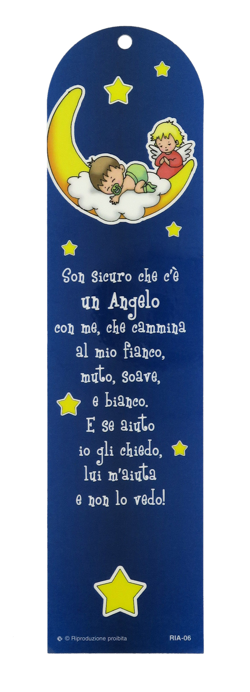 Segnalibro Angelo Custode sulla luna a forma di cupola con fiocchetto bianco - 5,5 x 22,5 cm