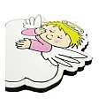La calamita colorata è in legno mdf a forma di angelo custode.