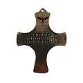 Croce in metallo bronzato raffigurante l'Agnus Dei, da 9 cm.