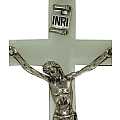 Croce fosforescente con sfondo in metallo nichelato, da 9 cm.