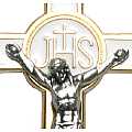 Croce in metallo dorato con smalto bianco e Cristo argentato - 7,5 cm