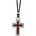 Croce in metallo nichelato con smalto rosso e laccio - 3,8 cm