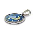 La medaglietta di cm 1,8 rappresenta la luna e le stelle stampate su porcellana con sfondo di colore blù e incastonato in un profilo di argento lucido.