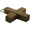 Croce in legno naturale di misura 2,5 x 2,5 cm dotata di pratico anellino.
