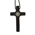 Croce di San Benedetto in legno con Cristo in metallo argentato. Altezza della croce: 5 cm.