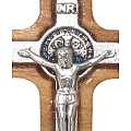 Croce di San Benedetto in legno d'ulivo e metallo con cordone incluso.