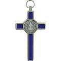 Croce San Benedetto in metallo nichelato con smalto blu - 8 cm