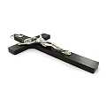 Crocifisso di San Benedetto in legno di noce con il corpo di Cristo e la medaglia in metallo argentato.