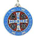 La medaglia del diametro di cm. 3 è in metallo argentato con smalto ad anello di San Benedetto.