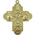 Croce in metallo dorato raffigurante in entrambe le facce la Madonna Miracolosa, Sacro Cuore di Gesù,