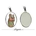 Medaglia Madonna basilica del Mar ovale in argento 925 e porcellana - 3 cm