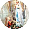 La medaglietta è in porcellana con stampata una immagine rappresentante l'Apparizzione di Madonna di Lourdes a Bernadette Soubirous.
