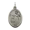 Medaglia ovale in metallo ossidato da 20 mm raffigurante San Cristoforo. Il prodotto ha la figura in rilievo ed è molto precisa nei particolari. Il retro reca l'incisione "Prega per me" e una rosa.