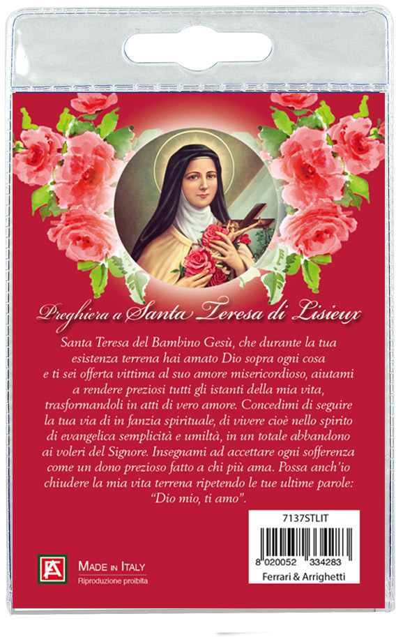 Medaglia Santa Teresa di Lisieux con laccio e preghiera in italiano