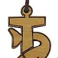 Ciondolo in legno d'ulivo raffigurante l'ancora con il pesce.