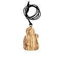 Ciondolo in legno d'ulivo con l'immagine serigrafata della Madonna del Divino Amore.