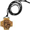 Croce in ulivo con incisone della Madonna col Bambino.