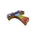 Croce Tau di San Francesco d'Assisi in legno d'ulivo dipinta con i colori che ricordano l'arcobaleno.