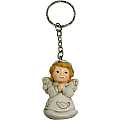 Portachiavi raffigurante un angelo che prega, con dettagli color azzurro (adatto a un bambino). Altezza: 4 cm. Idea regalo perfetta per bambini del catechismo.