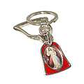 Portachiavi a forma di campana con incastonata una medaglietta con doppia immagine: in una faccia è