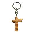 Portachiavi sagomato in legno d'ulivo con l'immagine serigrafata del Cristo rei.