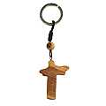 Portachiavi realizzato in legno d'ulivo con l'immagine di Cristo Rei serigrafata, e con un originale grano, anche in legno d'ulivo.