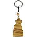 Portachiavi sagomato in legno d'ulivo con grano e con l'immagine serigrafata della Madonna di Loreto.