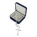 La croce misura cm 4 con Cristo riportato e la crociera è stampata con il volto della Vergine Maria di profilo.