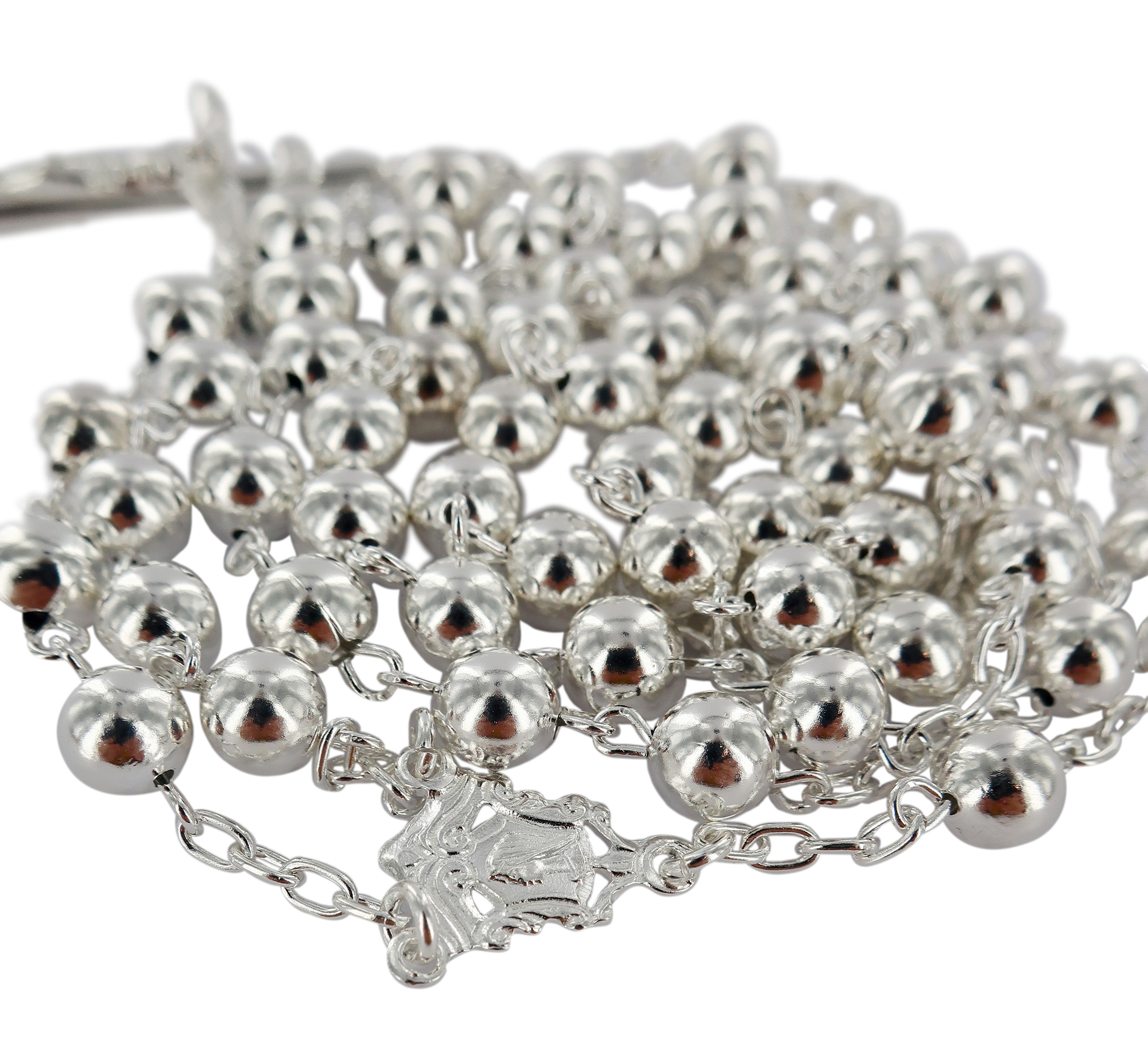 Rosario in argento 925 con grani tondi da Ø 6 mm