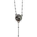 La chiusura nel centro dà la possibilità di essere indossato, in quanto il rosario misura cm 32 e la circonferenza di cm 46. Peso: gr. 2