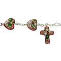 Braccialetto cloisonnè con 11 grani a cuore e croce - rosa