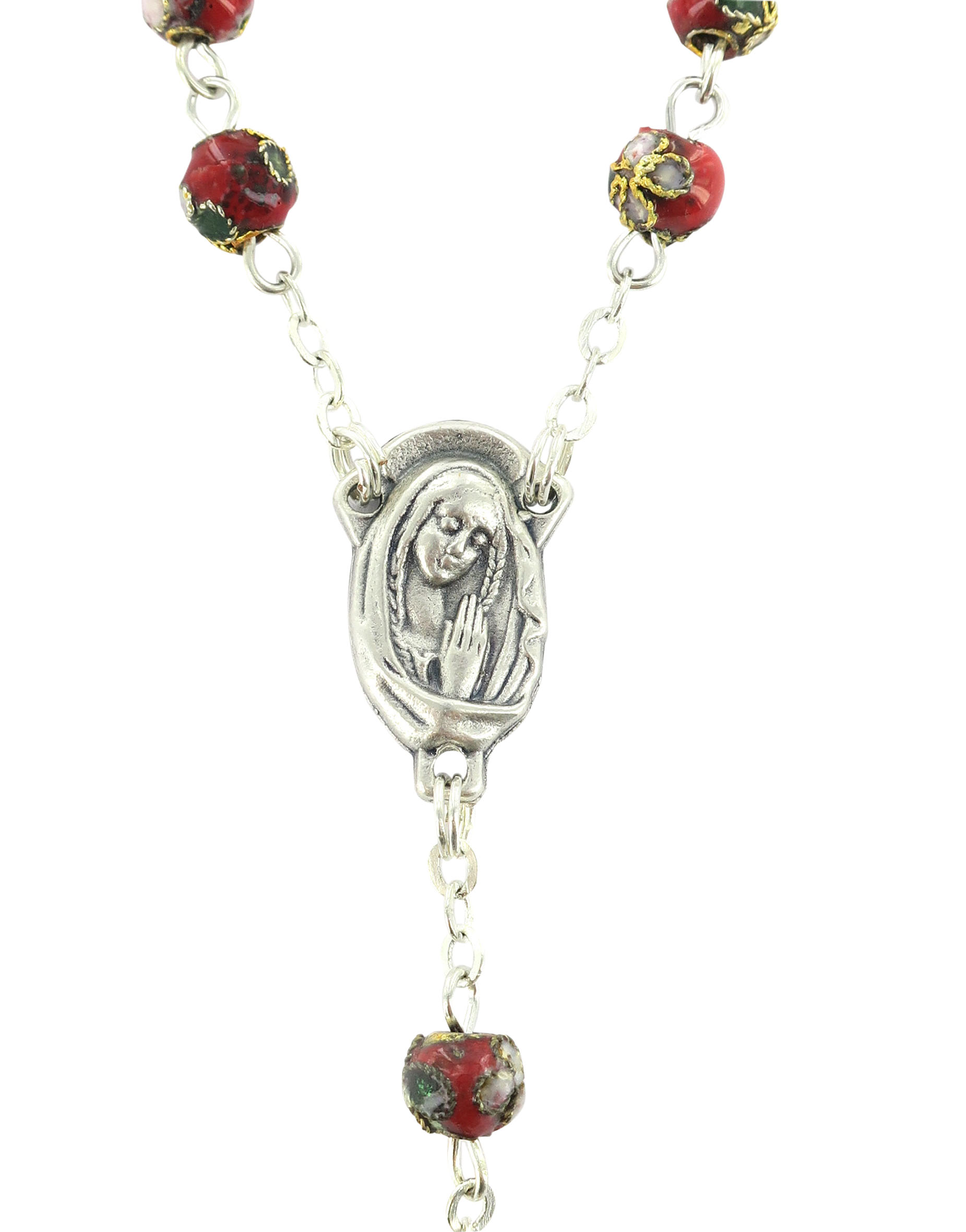 Rosario cloisonnè con grani da Ø 5 mm - rosso