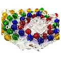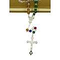 Rosario missionario in semicristallo con diametro 6 mm. Il Rosario missionario ha lo scopo di far pregare per la pace nel mondo e per la conversione di tutti gli uomini. I cinque colori diversi rappresentano i cinque continenti e richiamano l'intenzione secondo la quale si deve pregare. La decina del Rosario, quella bianca è per la vecchia EUROPA, perche' sia capace di riappropriarsi della forza evangelizzatrice che ha generato tante Chiese; la decina gialla è per l'ASIA, che esplode di vita e di giovinezza; la decina verde è per l'AFRICA, provata dalla sofferenza, ma disponibile all'annuncio; la decina rossa è per l'AMERICA, vivaio di nuove forze missionarie; la decina azzurra è per il continente dell'OCEANIA e dell'Australia che attende una più capillare diffusione del Vangelo.
