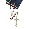 Rosario con grani in semicristallo di colore rosso la cui misura è 6 millimetri.