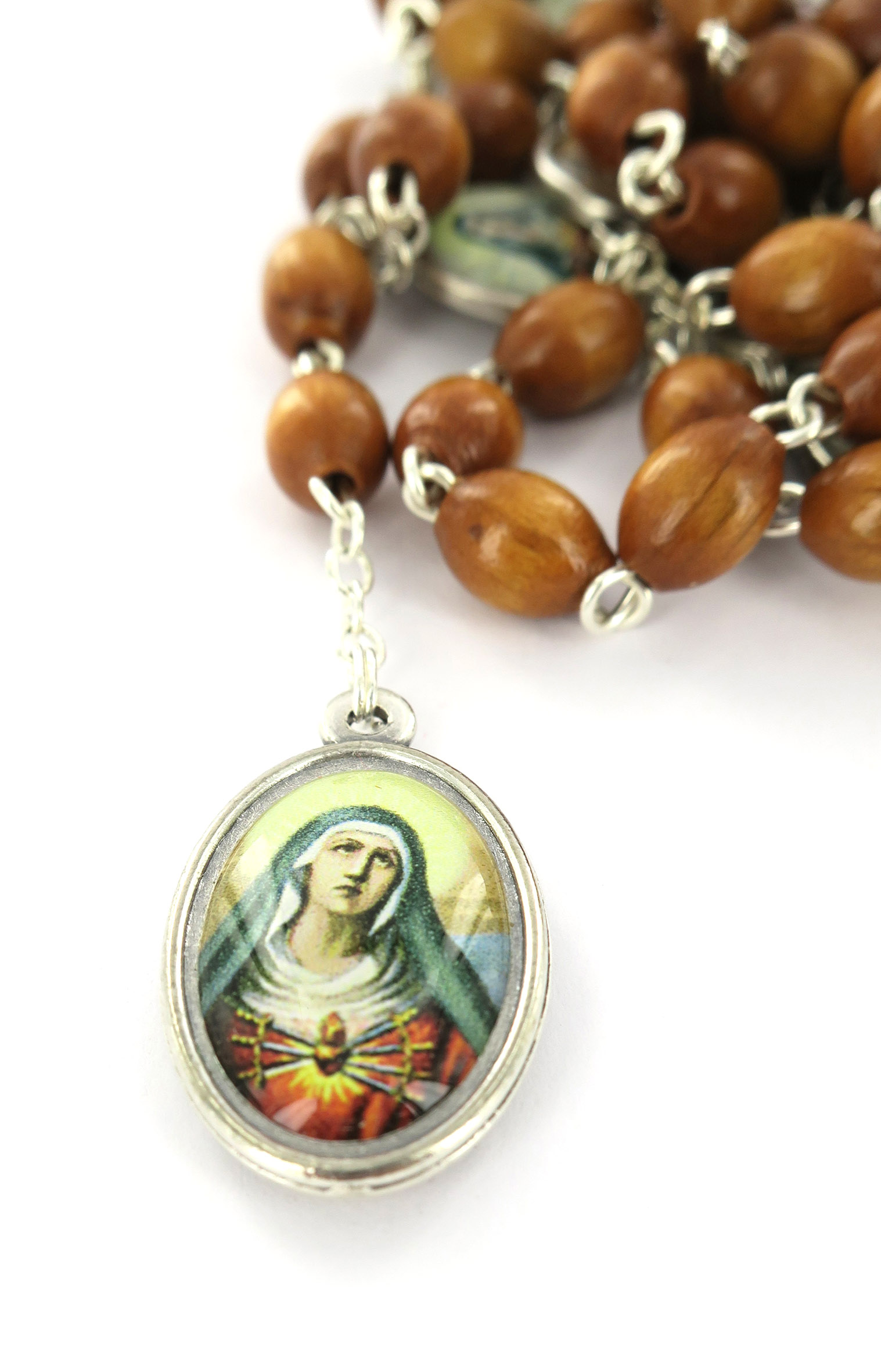 Rosario Addolorata con legatura a mano in metallo e spiegazione