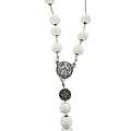 Rosario di San Benedetto in legno tondo bianco diametro 7 mm con Pater e legatura in metallo e chiusura con moschettone