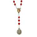 Rosario devozionale del Prezioso Sangue, con legatura a mano in metallo e spiegazione. Grani in plastica rossa e legatura metallica. L'immagine resinata di Gesù completa questo rosario devozionale.