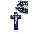 Ogni grano è di millimetri 7 e sulla croce in legno è impresso il corpo di Cristo in colore argento.
