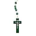 Ogni grano è di millimetri 7 e sulla croce in legno è impresso il corpo di Cristo in colore argento.