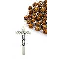 Rosario in legno naturale lavorato Ø 5 mm con legatura in ottone argentato
