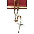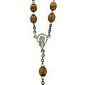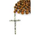 Rosario in legno naturale lavorato Ø 6 mm con legatura in ottone argentato
