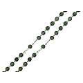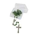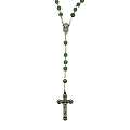 Il rosario è in legatura a mano con filo di metallo argentato, e i grani di mm 6 sono in vera aventurina verde. Croce con Cristo riportato e crociera ovale con Madonnina pregante e su retro di essa vi è il Sacro Cuore di Gesù.