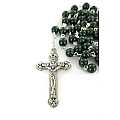 Il rosario è in legatura a mano con filo di metallo argentato, e i grani di mm 6 sono in vera malachite. Croce con Cristo riportato e crociera ovale con Madonnina pregante e su retro di essa vi è il Sacro Cuore di Gesù.