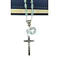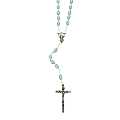 Rosario con legatura a macchina con grani ovali in plastica di colore azzurro. Sulla Crociera è visibile da un lato l'immagine della Madonna e dall'altro l'immagine del Sacro cuore di Gesù. Il prodotto è completamente realizzato in Italia. Il Santo Rosario è stato l'oggetto delle più vigile attenzione e premurosa sollecitudine da parte di tutti i Pontefici, che hanno visto il Rosario come una preghiera contemplativa che è insieme di lode e di supplica, efficace nel promuovere la vita cristiana e l'impegno apostolico. Anche Paolo VI e Giovanni Paolo II più volte hanno rivolto ai cristiani un appello perchè fossero innalzate supplici preghiere alla Beata Vergine del Rosario, per implorare da Dio il bene supremo della pace e il risveglio della vita cristiana.