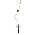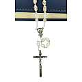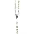 Rosario con legatura a macchina con grani ovali in plastica trasparente. Sulla Crociera è visibile da un lato l'immagine della Madonna e dall'altro l'immagine del Sacro cuore di Gesù. Il prodotto è completamente realizzato in Italia. Il Santo Rosario è stato l'oggetto delle più vigile attenzione e premurosa sollecitudine da parte di tutti i Pontefici, che hanno visto il Rosario come una preghiera contemplativa che è insieme di lode e di supplica, efficace nel promuovere la vita cristiana e l'impegno apostolico. Anche Paolo VI e Giovanni Paolo II più volte hanno rivolto ai cristiani un appello perchè fossero innalzate supplici preghiere alla Beata Vergine del Rosario, per implorare da Dio il bene supremo della pace e il risveglio della vita cristiana.
