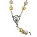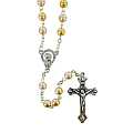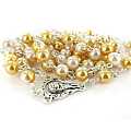 Rosario con grani effetto similperla con doppio colore - bianco e dorato
