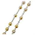 Rosario bianco e dorato effetto similperla 6 mm con catena in metallo e perline doppio colore