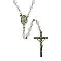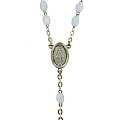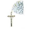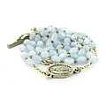 Rosario imitazione madreperla mm 4 legatura ottone argentato azzurro