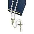 Rosario imitazione madreperla mm. 4 con legatura in ottone argentato - azzurro