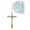 Rosario imitazione madreperla ovale mm. 4 con legatura in ottone argentato - azzurro